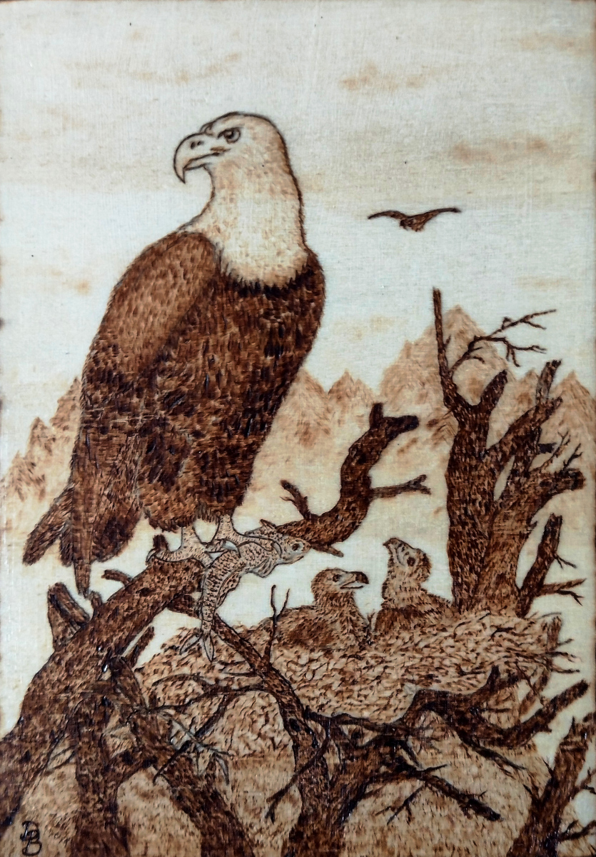 Kolibri – ca. 21×18 cm (Feuerzeichnung + Acrylfarbe)