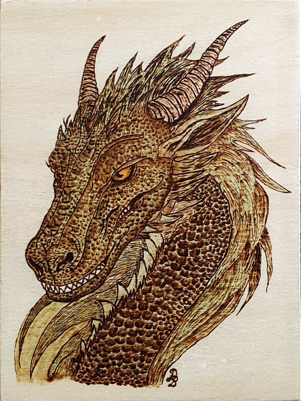 Drachenkopf – ca. 15×21 cm (Feuerzeichnung + Buntstift)