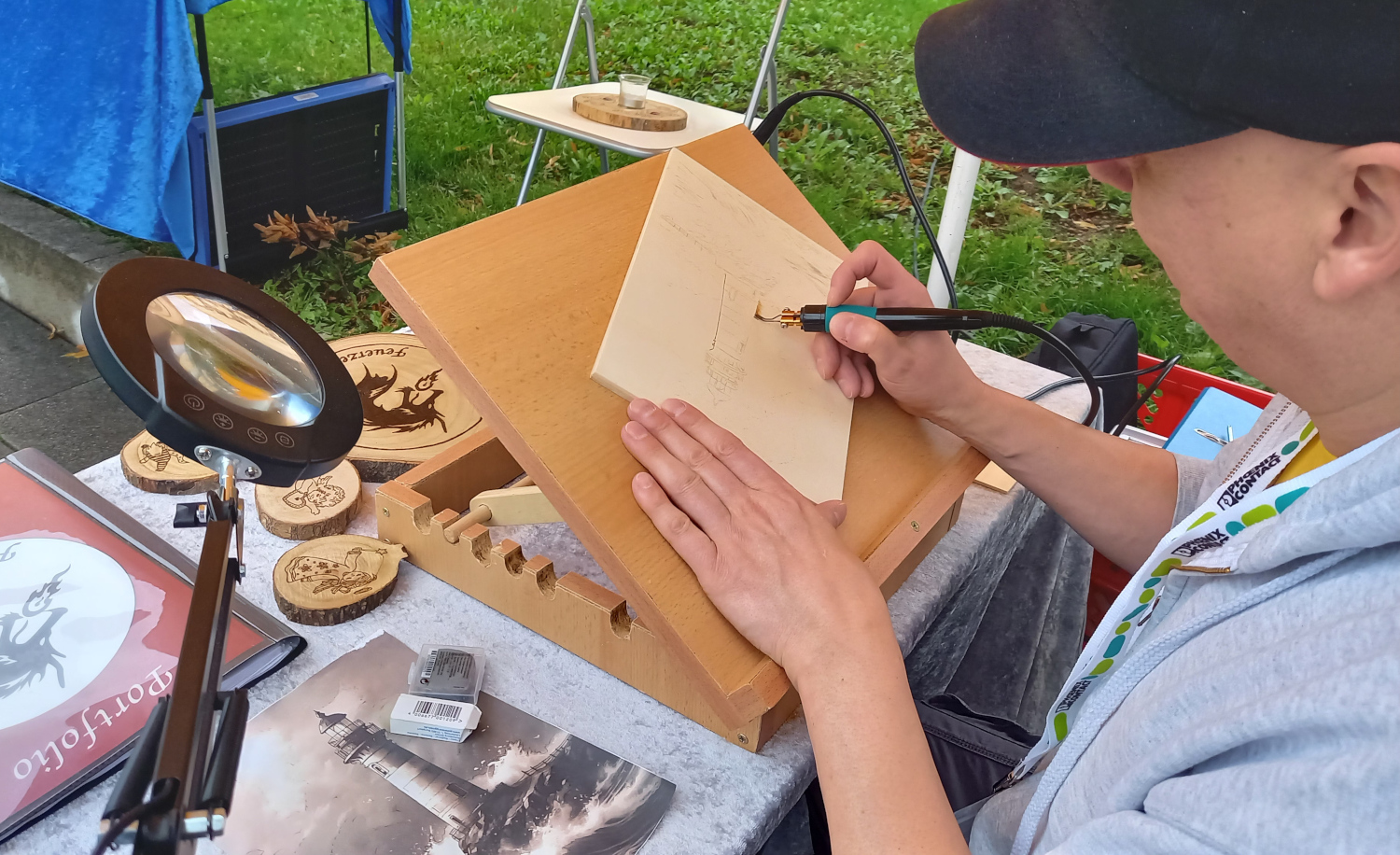Meine Liebe zu Holz und die Arbeit mit diesem wundervollen Material führte mich vor einigen Jahren über die Erstellung individueller Sonnenfänger-Unikate zur uralten Handwerkskunst der Brandmalerei. Eine Arbeit, die ich seitdem als „Feuerzeichner“ mit viel Herz und Liebe ausübe.
